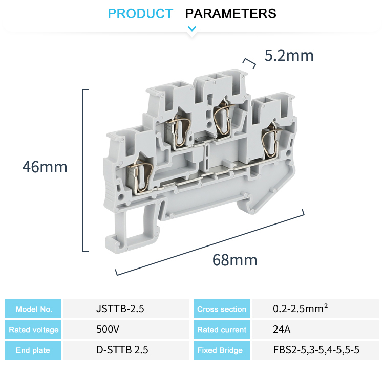Nagtatampok ang aming mga multi-level na mga bloke ng terminal na naka-load ng tagsibol, three-tier PA66/nickel-plated na mga disenyo ng tanso para sa mga high-density na mga kable sa mga compact na puwang. Nag-aalok ng tibay ng apoy-retardant, mga contact-proof-contact, mga koneksyon sa gas na masikip, at pagiging tugma ng DIN NS35, pinasimple nila ang potensyal na pamamahagi sa pamamagitan ng mga shaft na tiyak na function at integrated label. Ang mga modular na accessory (end caps, tulay) at unibersal na pag-mount ay matiyak na maaasahan, pagganap ng pag-save ng espasyo para sa hinihingi na mga sistemang elektrikal.