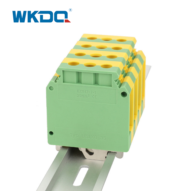 Ang mga bloke ng ground terminal ay ginawa gamit ang mga de-kalidad na materyales, tinitiyak ang kanilang kaligtasan at kahabaan ng buhay. Ang pagsasama ng isang paa ng bakal ay nagbibigay -daan para sa madaling pag -install sa DIN Rail 35mm, na nagbibigay ng isang ligtas at matatag na naka -mount na solusyon.